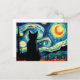 Embrace the enchanting spirit of Vincent van Gogh's Starry Night with our vintage-inspired cat rendition. This fine art painting, blending elements of impressionism with the charm of a feline companion, captures the essence of the renowned landscape in a delightful and whimsical display. Elevate your space with the timeless allure of this exquisite piece today! Generative content.