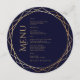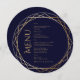 Cosmic starry night celestial mystical personalized wedding round menu card featuring galaxy milky way midnight sky with star dust, crescent moon and other astrological symbols in navy blue and golden colors. This card is easily editable. If you need help with the customization of this card or you need more matching products for this collection kindly message me via Zazzle.