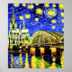 This beautiful design shows Cologne Germany and it's famous cathedral in a style of Van Gogh's Starry Night painting.
