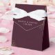 The 'Starry Night Deep Crimson Wedding Favor Boxes' offer a stylish and memorable way to thank your guests. Each favor box is dressed in an elegant deep crimson, resembling the mysterious allure of the evening sky. The edges are kissed with a touch of golden star dust, adding a sprinkle of celestial magic. Adorned with a white ribbon, these boxes carry the names of the newlyweds and the date of their union in a sophisticated font, making it a lovely keepsake that guests can treasure. These boxes are perfect for housing small gifts, sweets, or mementos from your enchanted evening wedding.