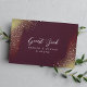 Capture the sentiments and well-wishes of your wedding day with the 'Starry Night Deep Crimson Wedding Guest Book'. This elegant book invites your guests to pen their messages against a backdrop inspired by the night's sky. The deep crimson cover is dusted with golden speckles, adding a touch of stardust magic to the occasion. It's not just a book; it's a cherished repository of memories from your special day, a cosmic ledger that binds the warmth of your loved ones' words with the starlit theme of your celebration.