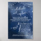 You're offering disposable cameras to round out your collection of special wedding photos and this sign will help your guests understand your wishes for their use. With an ethereal "starry night" navy and white background image and simulated sparkling white lights, I've combined a beautiful modern script font to render graphics depicting key words and phrases. In this piece the calligraphy headers read "celebrate and capture" and "i spy!" Your personal details are easily added for customizing this template as little or much as you wish; change the wording as you see fit. All layers are unlocked to allow you as much control as you desire; feel free to reposition any part of the layout, or even change text font and size. //