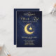 This stunning invitation features a deep navy blue background with a glowing crescent moon and star, set against a beautiful geometric "starry night" constellation. Perfect for inviting friends and family to your Eid al-Fitr or Eid al-Adha celebration.