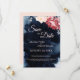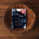 This Starry Night Floral wedding save the date inspires either a midnight summer theme or a dark winter of snow theme, making it a seasonally versatile design. The navy blue, almost black, watercolor with a celestial star or snowflake filled sky, combined with the pop of minimal pink flowers and calligraphy is sure to speak to the magic of your marriage celebration, regardless of the time of year.