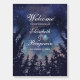 Welcome your guests beneath the stars with this stunning starry night celestial wedding welcome sign. A deep midnight blue sky filled with shimmering stars creates a romantic cosmic atmosphere. Elegant forest silhouettes add an enchanted woodland touch that perfectly suits nature-inspired celebrations. Ideal for celestial weddings, enchanted forest themes, and evening ceremonies. This welcome sign creates a beautiful focal point at your ceremony or reception entrance. Pair it with the full Starry Night Forest wedding stationery collection for a cohesive event design.