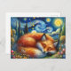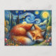 Immerse yourself in the tranquility of nature with this exquisite postcard, showcasing a red fox serenely sleeping under a mesmerizing, star-filled sky reminiscent of Van Gogh's famous 'Starry Night'. Vivid and colorful, the image blends whimsical fantasy with the magical atmosphere of a dreamlike garden. Perfect for fox lovers, kids, or anyone who appreciates cute and artful designs, this postcard is a delightful celebration of wildlife and imagination, making it an enchanting addition to any collection or a thoughtful gesture for someone special