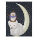 A Bear and a Penguin on a pearl white crescent moon