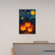 A mesmerizing fusion of classic art and festive charm, this Halloween poster features glowing jack-o’-lanterns beneath a swirling starry sky inspired by Van Gogh’s Starry Night. The largest pumpkin wears a witch’s hat, adding a playful yet magical touch to the luminous scene. Perfect for art lovers, Halloween enthusiasts, and anyone who appreciates the blend of fine art and seasonal whimsy, this piece brings both elegance and festive spirit to any space.