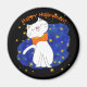 White Kitty Cat Blue Starry Night with Gold Stars Classic Round Sticker adds a Halloween touch to your gifts, cards, and mail.