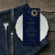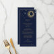 Starry night celestial mystical personalized wedding menu card featuring galaxy milky way midnight sky with star dust, crescent moon and other astrological symbols in navy blue and golden colors. This card is easily editable. If you need help with the customization of this card or you need more matching products for this collection kindly message me via Zazzle.