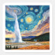 Old Faithful is a famous geyser in Yellowstone National Park, Wyoming, known for its predictable eruptions every 60-90 minutes. This design is Old Faithful in the style of Van Gogh's Starry Night.