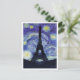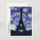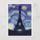This image is a composite representation of night in Paris with the Eiffel tower and Vincent van Gogh's painting "Starry Night" as the background.