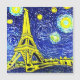 This beautiful design shows the city of Paris France and the Eiffel Tower in a style of Van Gogh's Starry Night painting.