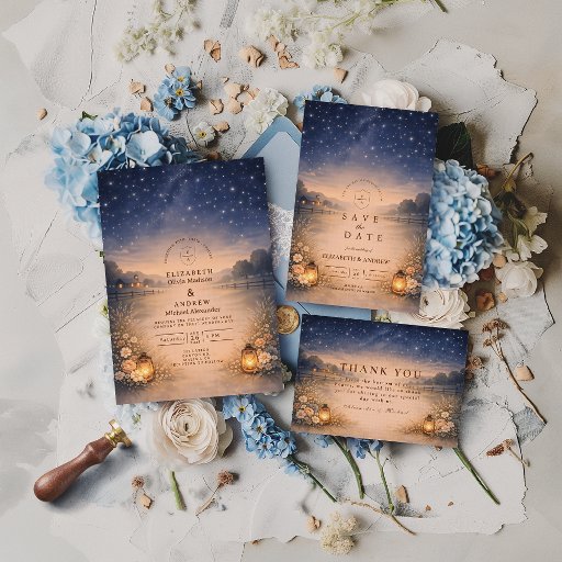 Starry Night Rustic Meadow Wedding Invitation