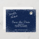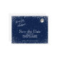 A starry night Save the Date postcard with a moon and the couples initials on the moon. A beautiful and sweet design for your special day.