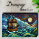 Enhance your creative vision with Decoupage_Boutique's premium sailing ship decoupage paper. This artistic design features a stylized wooden vessel with patchwork sails against a swirling Van Gogh-inspired night sky with spiraling waves and a golden moon. This design creates an elegant focal point perfect for creative spaces, artistic venues, or contemporary-inspired spaces. COLOR COMBINATIONS: turquoise, navy, amber, gold, and purple enhance natural beauty. DESIGN FEATURES: decorative line work, flowing wave patterns, and celestial spiral motifs bring depth to your projects. PERFECT FOR: jewelry boxes, accent walls, custom coasters, art galleries, children's furniture, and gift packaging. Ideal for a variety of projects both large and small. #DecoupageBoutique #StylizedArt #WhimsicalDecor #MaritimeArt #CelestialStyle