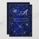 This is a dramatic and elegant formal wedding invitation, with a silver starry night galaxy and stars shining against a deep gradient blue background. Your monogram, first names, and wedding date are on the front in silver gray. There is plenty of room for your customized wedding text, also in silver gray, on the back. If you need to change the font, size, location, or color of the text, use Customize It. The back of the invitation is the same deep gradient blue, but without the galaxy and stars.