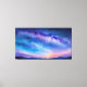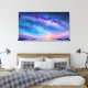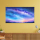 This enchanting watercolor design captures the serene beauty of a cosmic twilight scene. A vibrant sunset peeks over distant mountain silhouettes, painting the sky in a mesmerizing palette of purples, blues, and soft oranges. The celestial expanse above is adorned with twinkling stars and swirling nebulae, creating a dreamy, otherworldly atmosphere.