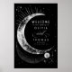 Celestial night sky, crescent moon and stars wedding welcome sign