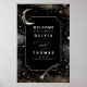 Celestial night sky, crescent moon and stars wedding welcome sign