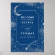 Celestial night sky, crescent moon and stars wedding welcome sign