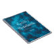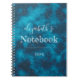 This notebook features an image of a starry blue night sky on the front cover. The word "Notebook" appears in white sketched font on the front--or change it to any text of your choice. Personalize it with your name in elegant white handwriting calligraphy and the date or other text below in white sans serif type.