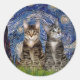 Starry Night - Two Tabby Tiger Cats Classic Round Sticker