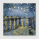 Thatched Cottages at Cordeville. Vincent Willem van Gogh. Night landscape in dark blue and yellow tones. There is a bridge across the river. In the foreground, a man and a woman are walking along the embankment. The stars are shining in the sky. Reproduction of famous works of art images in the public domain.
