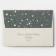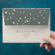 Add a sophisticated celestial touch to your wedding suite with this elegant starry night envelope. The top flap features a minimalist constellation design with shimmering faux gold stars set against a deep gray-green sky, while the front includes a custom return address in timeless calligraphy.