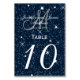 This blue and white monogram wedding table number card with a starry night look makes a great card for any occasion. The background has a blue glitter look, with glowing stars. Customize with your bride and groom names, newly weds last name, monogram initial and wedding date. A unique card that can also be used as a keepsake. Design by Elke Clarke ©. Printed photo effect glitter design. Order one per table with each table number but still receive the bulk discount for total number ordered. Other colors available on request. See more designs at Zazzle.com/monogramgallery. This signature original design, by Elke Clarke, popular since 2007, is now updated by adding a starry night effect with glitter background photo effect.