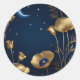 Starry Night with Gold Crescent Moon Classic Round Sticker