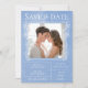 Announce your wedding day with this Starry Photo Save the Date Announcement. Save the Date design features a starry background and photo placement for the happy couple with star trail embellishments. Add your photo and wedding details to customize.