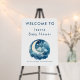 Welcome your guests to a dreamy baby shower with this enchanting moon and stars-themed welcome sign. Featuring a watercolor crescent moon nestled among soft clouds and twinkling stars, this design sets a magical tone for the celebration. Perfect for a baby boy shower, the deep blue hues and celestial imagery create a calming and inviting atmosphere. Display this adorable sign to greet friends and family as they arrive to celebrate the little one’s arrival, adding a whimsical touch to your special day.