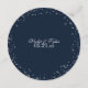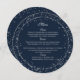 Navy blue and silver grey starry sky design small round menu for wedding or any fine event. Background color can be changed to any color. Personalize text as preferred.