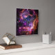 The colors represent wavelengths of light across a broad spectrum. X-rays from NASA's Chandra X-ray Observatory are shown in purple; visible-light from NASA's Hubble Space Telescope is colored red, green and blue; and infrared observations from NASA's Spitzer Space Telescope are also represented in red.