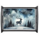 A graceful stag stands beneath a shimmering winter sky, framed by snow-dusted pines and delicate bare trees. The deep midnight blues fade into frosty whites, while stars and snowflakes scatter like jewels across the heavens. This dreamy woodland scene captures the quiet wonder of a snowy night, blending cottagecore warmth with celestial magic. Perfect for evoking winter’s stillness and the beauty of nature’s rhythm. AI generated artwork.