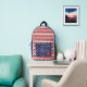 This cool backpack design has a patriotic stars-and-stripes pattern inspired by the American flag. The repeating design is made in shades of red, off-white and blue. The front pocket and the top and sides have a star pattern, and the front has stripes. Include your custom monogram on the pocket. Celebrate your love of the USA with these bags that are perfect to carry for the 4th of July, Labor Day, and all days when you want to celebrate the United States. Find more backpacks and other custom products in the FancyCelebration store: https://www.zazzle.com/store/fancycelebration