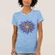 Colored Pencil picture of a red, white, and blue abstract flower, with stripes, and a double star center outlined in yellow gold, printed on tshirts.
