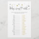 This baby shower game card features a script modern font on white background with gray and gold stras, perfect for a gender reveal party! The backside is with the answer key. Please check all the games from this collection below.
