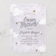 Cute baby shower invitation features a lavender background with stars and fluffy clouds. These baby shower invitations are easily customized for your event by simply adding your details.