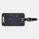 Personalized luggage tag featuring a gold star pattern on a navy blue background.