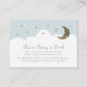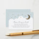 This cute and modern "please bring a book" or "books for baby" card features faux gold glitter stars and the crescent moon with white clouds on a light baby blue background. The reverse side features light baby blue background. Personalize it for your needs. You can find more matching products at my store.