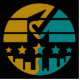 This design features a circular layout characterized by vibrant stripes and colorful shapes that generate a dynamic visual impact. A detailed city skyline at the bottom provides, while a central ballot shape symbolizes approval and action through a cleverly integrated check mark icon. in the central, five carefully arranged stars enhance the composition, conveying a sense of achievement and aspiration.