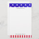 Red, white, and blue stationery you can personalize with your name and address. The top features a blue trim with white stars, while the bottom features red and white stripes.
