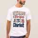 This design features a white t-shirt with the text "STARS & Stripes" in tan and red, above "JESUS" filled with a stars and stripes pattern, and "Christ" in dark blue.