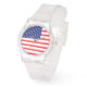 Celebrate your patriotic spirit with our **Stars & Stripes Clear Silicone Watch**. This stylish timepiece features a clear silicone band and a clear watch face, allowing the bold depiction of the American flag to shine through vividly. The iconic red, white, and blue colors pop against the transparent background, making a statement of American pride with every glance. Crafted for both durability and comfort, this watch is ideal for daily wear. Whether you're at work, out for a run, or attending a casual gathering, its versatile design complements any outfit while showcasing your love for the USA. Perfect for patriots of all ages, this watch combines functionality with a patriotic flair. Embrace the essence of freedom and unity with our Stars & Stripes Clear Silicone Watch, where timeless style meets patriotic passion. Let your wrist tell the story of American pride wherever you go.