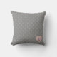 Pale pink hearts form a polka dot pattern on a pleasant gray background. Hiding inside some of the hearts is a gold star with an emulated metallic shine, creating a playful and cute design. Customize the monogram on this pillow to make it uniquely your own.