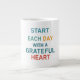 Begin every morning with a reminder to embrace gratitude! This oversized mug features the uplifting message "Start Each Day with a Grateful Heart," perfect for holding an extra-large coffee or tea. With a warm and inviting design, it’s more than just a mug – it's a gentle reminder to focus on the positives. Ideal for cozy mornings, work breaks, or as a thoughtful gift to someone special.