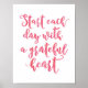 Start each day with a grateful hearttypography poster print features modern hand written typography in pink watercolor. Bright and happy, the print is suitable in a kids room or the living room.
