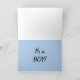Cute blue bubbles background and baby footprints maternity design. Text says WHAT STARTED WITH A KISS... ENDED WITH OUR GREATEST WISH. Customizable text to personalize it just the way you want it. On greeting cards, invitations, mugs, stickers, postage stamps, T-shirts and more! PinkInkArt original!